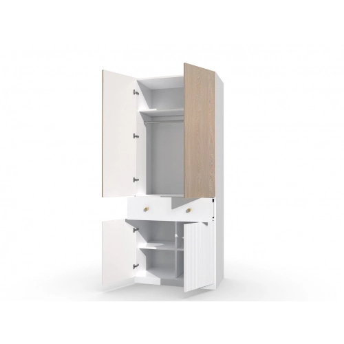 Шкаф "Темпо" предлагает вместительное пространство для хранения вашей одежды, аксессуаров и других предметов. Две створки шкафа обеспечивают удобный доступ к вещам и позволяют организовать их по категориям. Внутреннее пространство шкафа можно настроить с помощью полок, штанги для вешалок и других элементов, чтобы максимально удовлетворить ваши потребности в хранении.